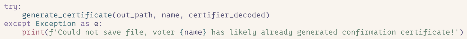 Finally, the certificate. This route creates and saves a pdf of the name and the certifier in a pdf format if it is able to and sends that to the user.
