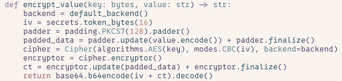cipher = Cipher(algorithms.AES(key), modes.CBC(iv), backend=backend)